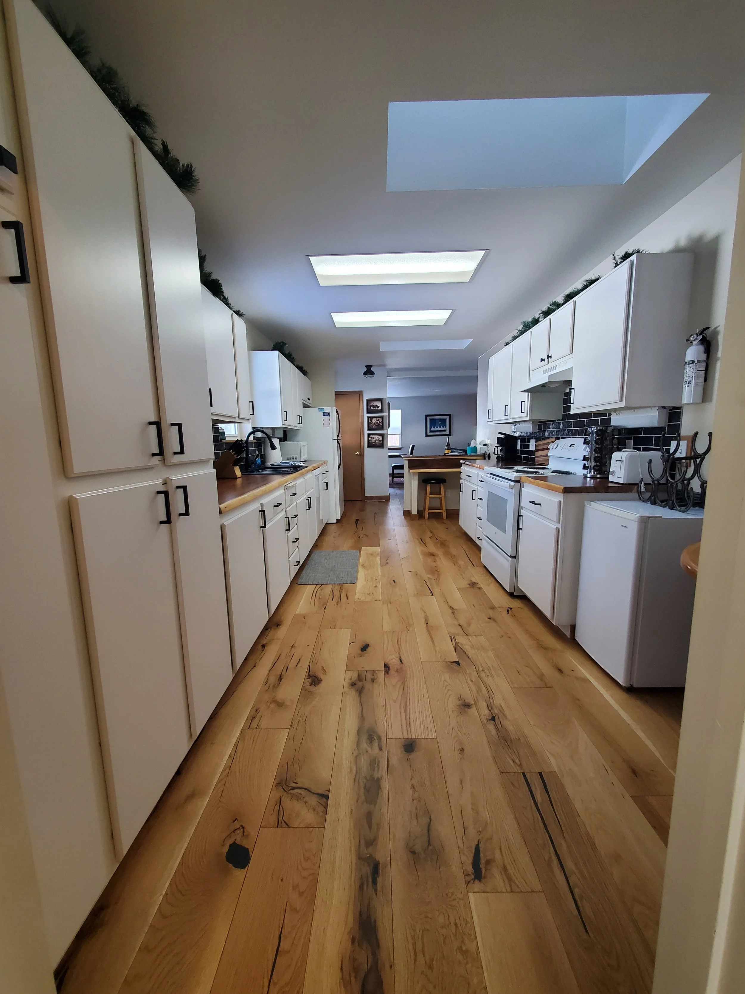 Freshly updated cabin with modern furnishings, a spacious kitchen, & just steps from shops, lakes, & trails. -