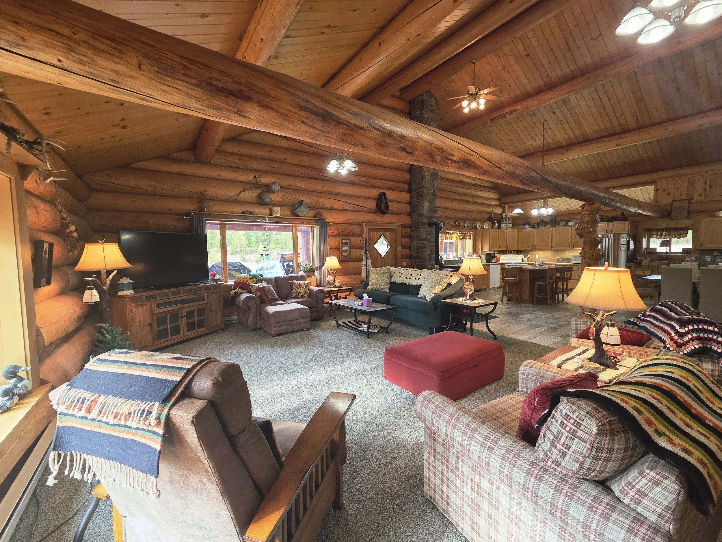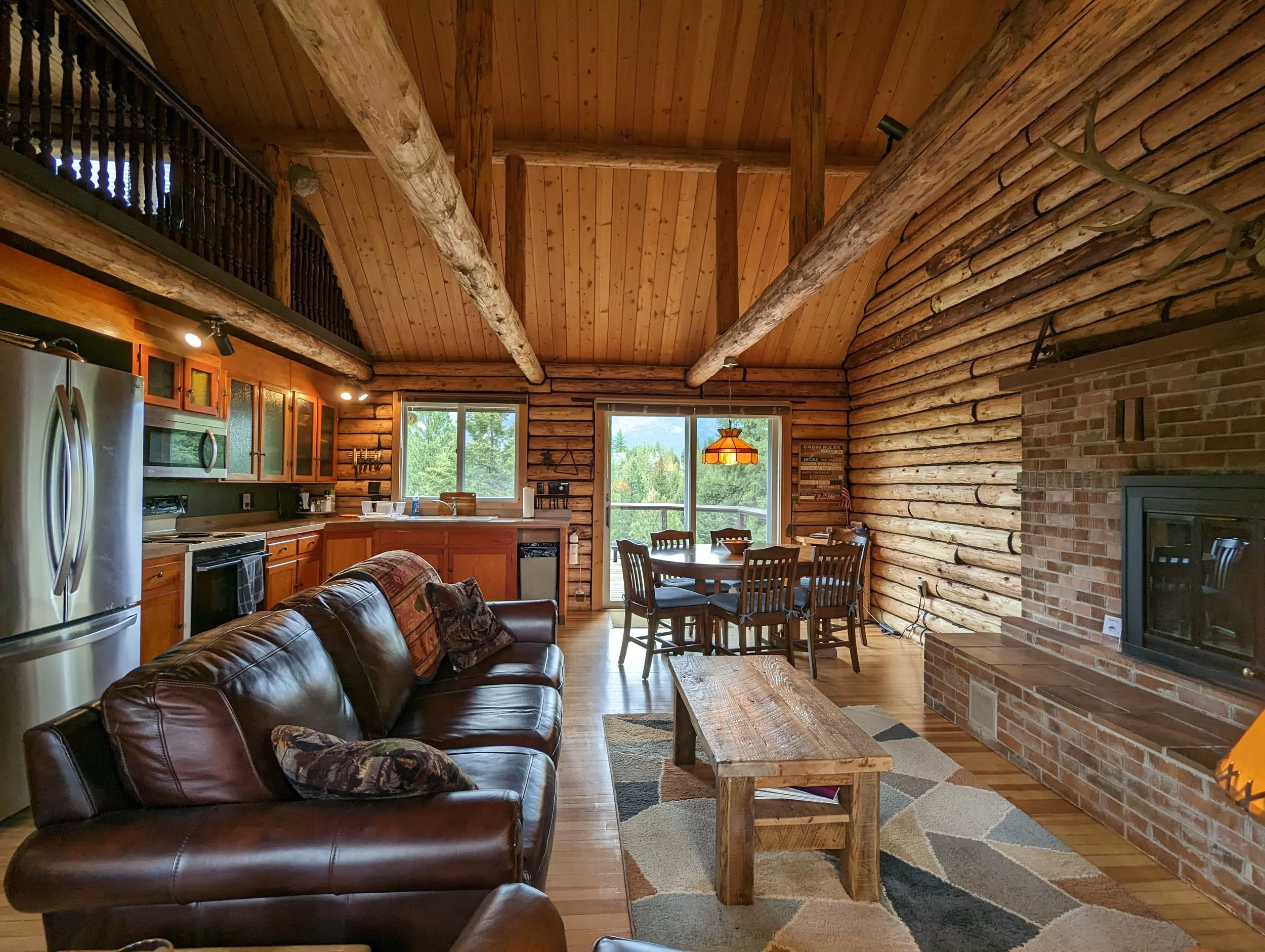 Charming log cabin with big open living area, spacious loft, & serene surroundings just minutes from the lake & local trailheads. -